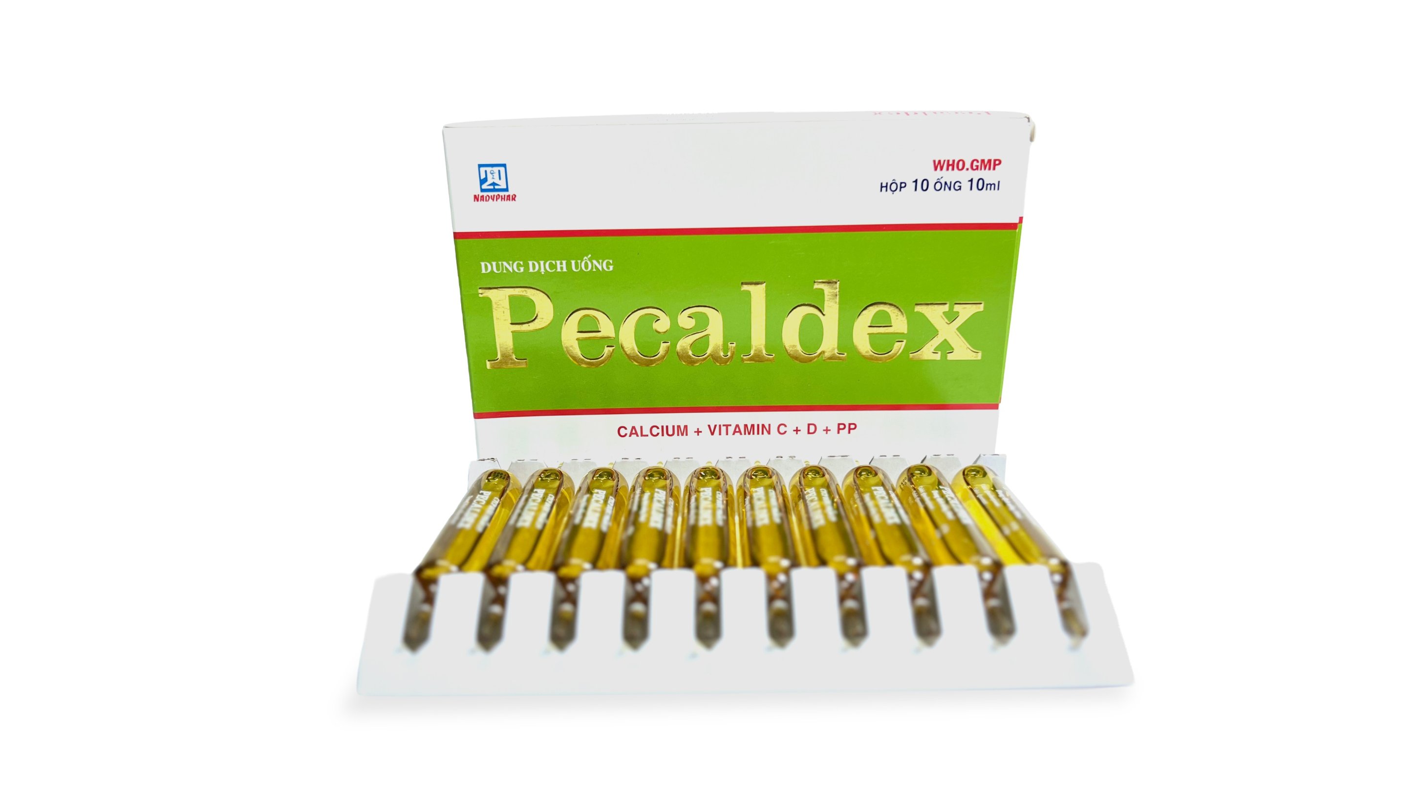 | Ống 10ml: | Calci glucoheptonat 0,7g; Calci gluconat 0,3g, Vitamin C 0,1g, Vitamin D₂ 0,05mg, Vitamin PP 0,05g |